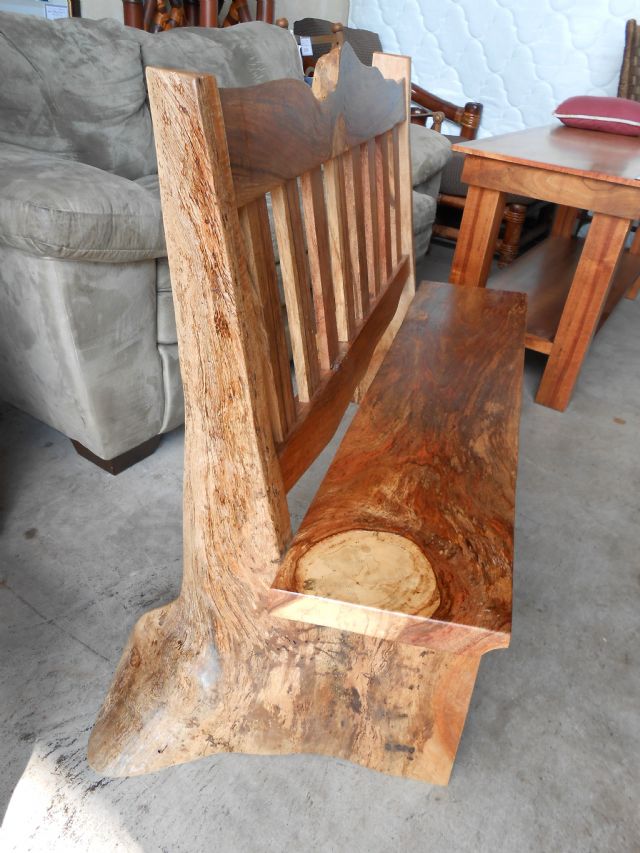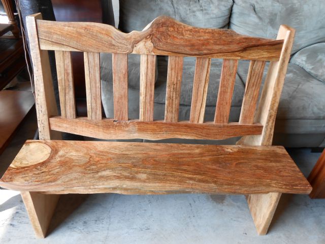 Beautifully Custom Made Mango Bench measures 48'' long, 20'' deep, 15'' to the seat and 36'' tall at the back. A Truly one of a kind piece.
