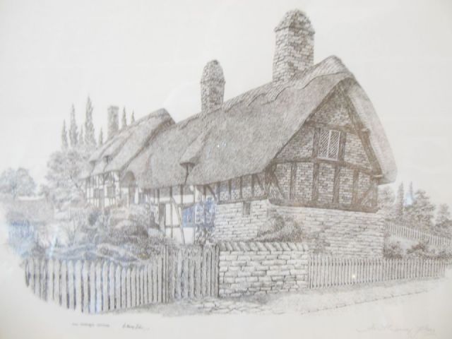 Original, signed Pen and Ink by Anthony John, Anne Hathaway's cottage.
