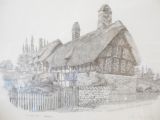 Original, signed Pen and Ink by Anthony John, Anne Hathaway's cottage measuring 19'' x 16''.