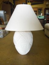 White Ceramic Lamp with Palm motif.