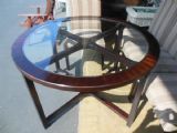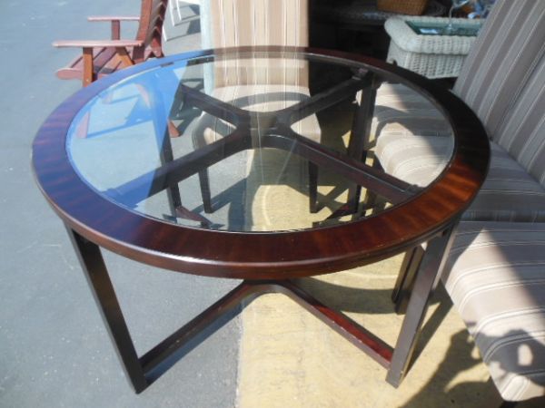 Dining Room Table with Round Glass top & 4 Chairs dark wood.
