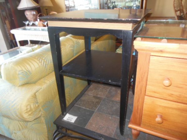 SET OF TWO - Black Asian Style End Tables with Gold Trim.