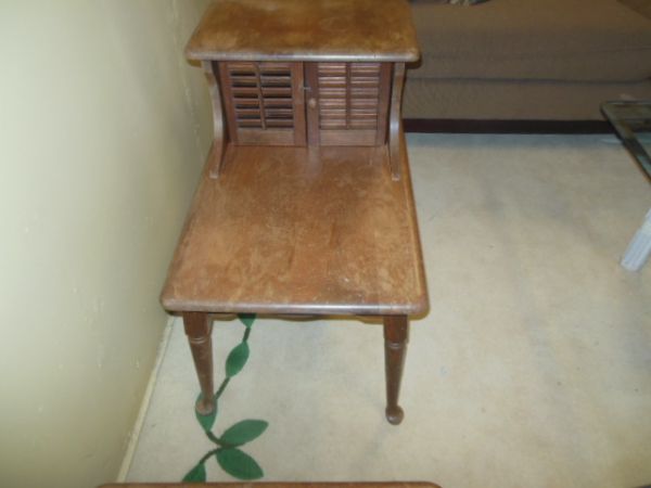 SOLID maple early American end tables with louvered doors. Need some TLC, but SOLID!