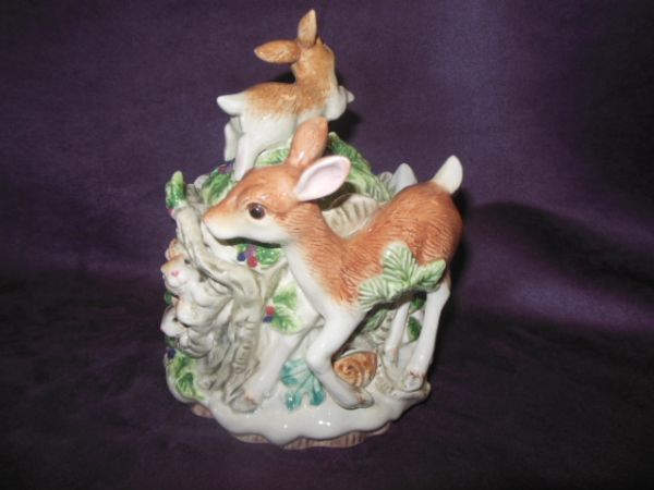 Rare, hard to find Fitz & Floyd Peaceable Kingdom Rabbits and Fawn Lidded Box. NIB.