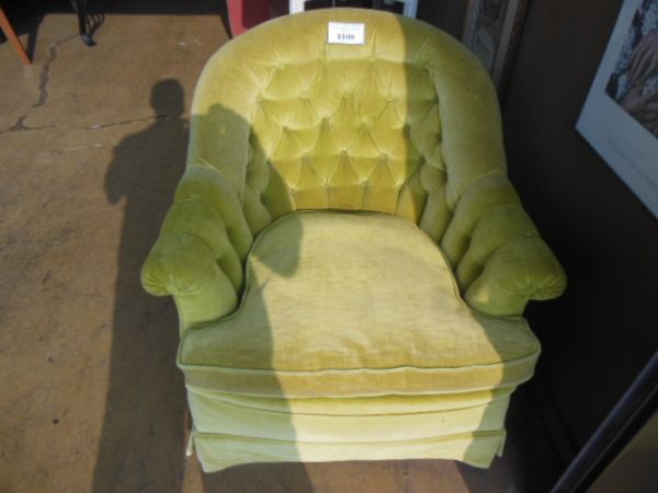 Chartreuse Button Back Barrel Chair.
