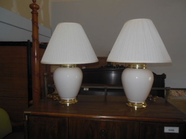 Ivory Ginger Jar Lamps - Brass Base and Top.