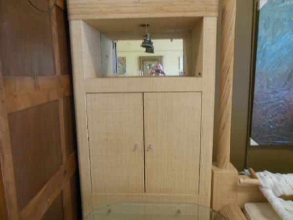 Woven Rattan Armoire w/Drawers, Cabinet, Lighted Shelf.