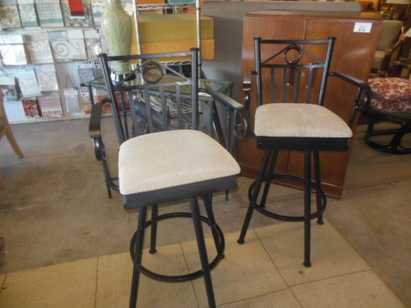 SET OF TWO - Black Metal Swivel Barstools with Arms 31''.