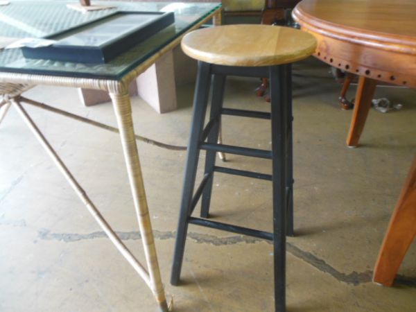 31'' Tall Wooden Barstool - Natural Top, Black Legs.