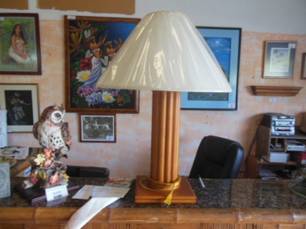32''H Gathered Bamboo Rod Lamp w/Shade - NEW! Plastic on Shade!.