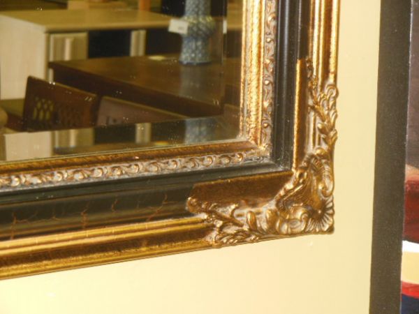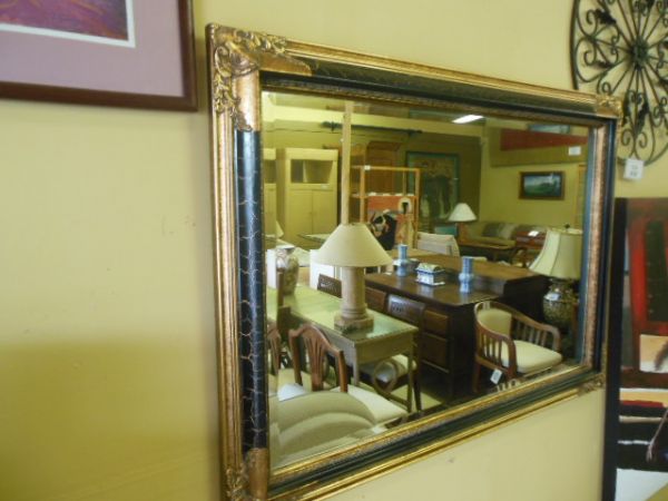 Beveled Mirror - Black Frame with Gold Accents - 29.75''H x 42''W.
