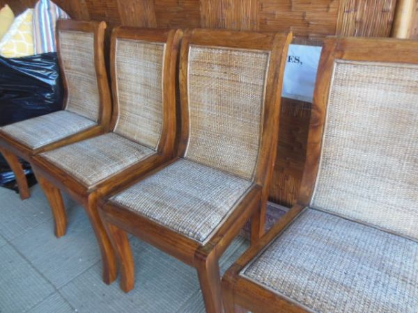 SET OF FOUR - Wood Dining Chairs with Woven Rattan Insets.