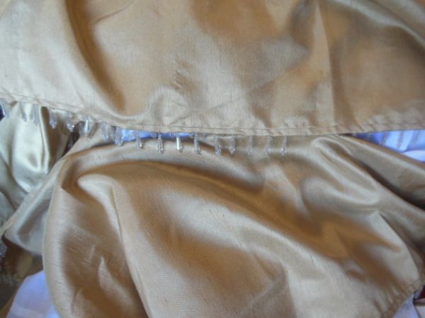 Gold King Size Bed Skirt with Clear Bead Trim.
