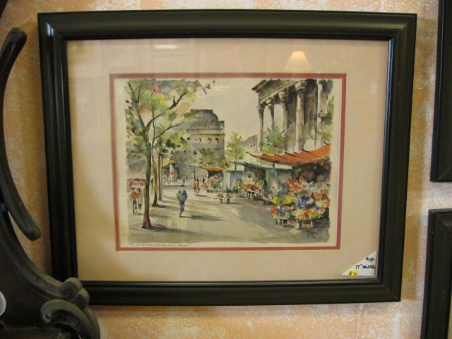 Framed watercolor art. Colorie a la Main. Paris. 17x20..
