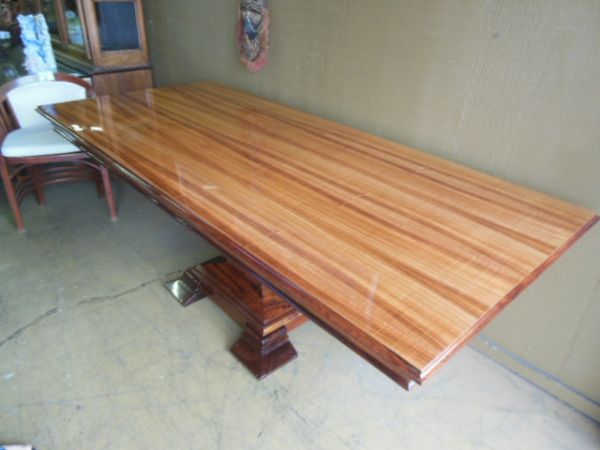 35'' x 89'' x 31''H Book Matched Fiddle-back Curly Koa Dining Table.