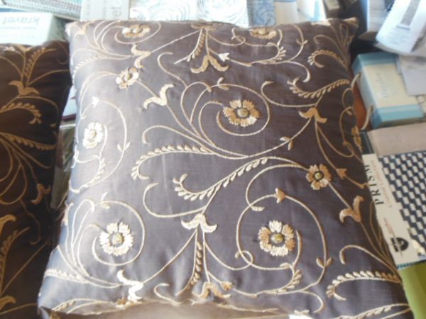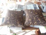 SET OF TWO - Embroidered Throw Pillows - Brown.