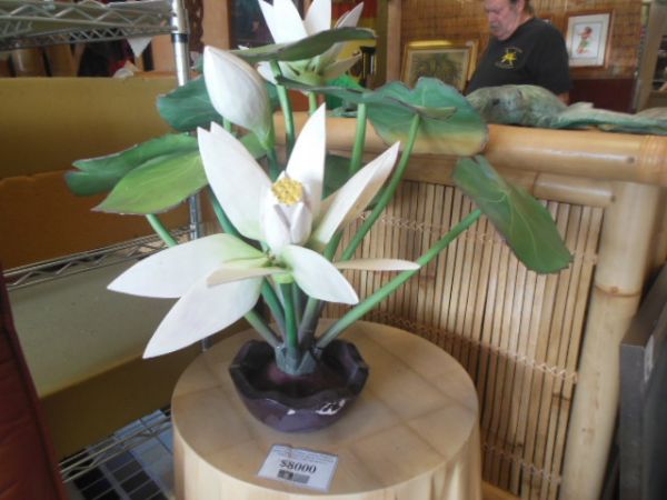 Carved Wood Lotus Sculpture - 25''W x 21.5''H.