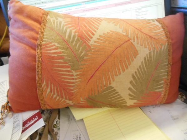 12'' x 20'' Coral Monstera Leaf Pillow with Coral & Shell Trim.