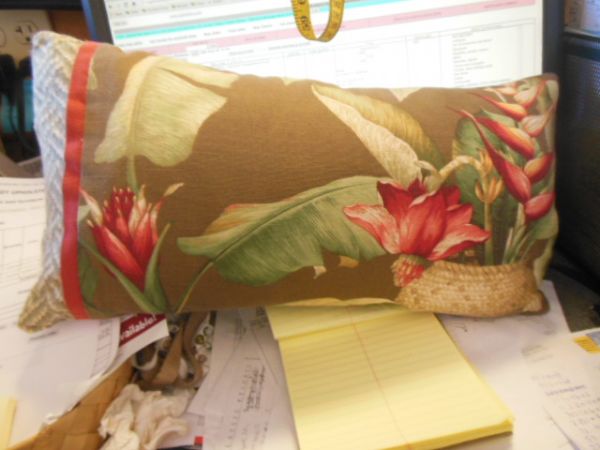 12'' X 20'' Down Filled Pillow - Halconia Arrangement w/Coral Trim.