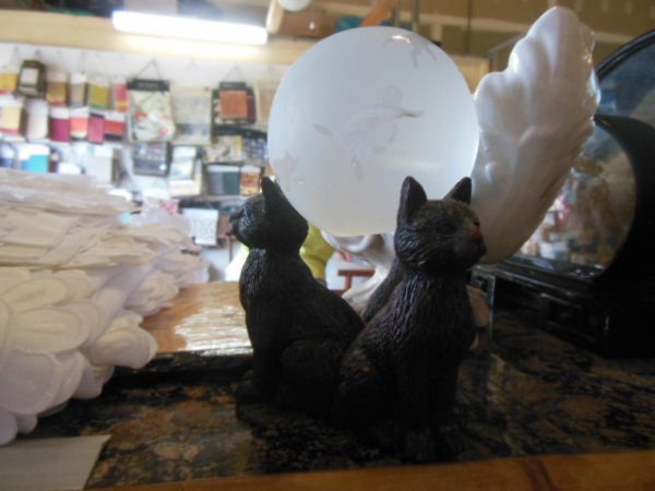 Cat Pedestal with Frosted Glass Sphere with Cats.