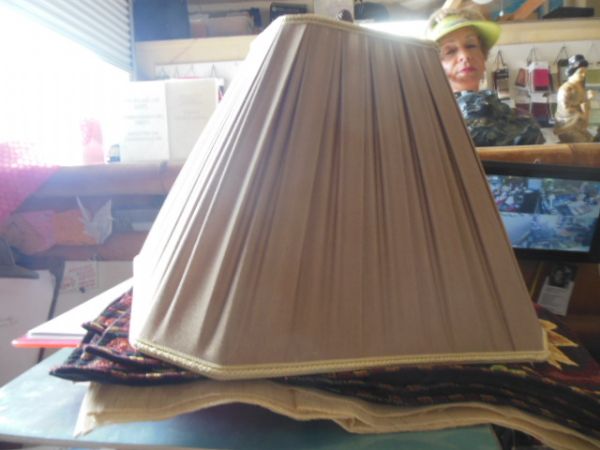 15'' Bottom x 12''H Gold Silk Shade w/Pineapple Finial.