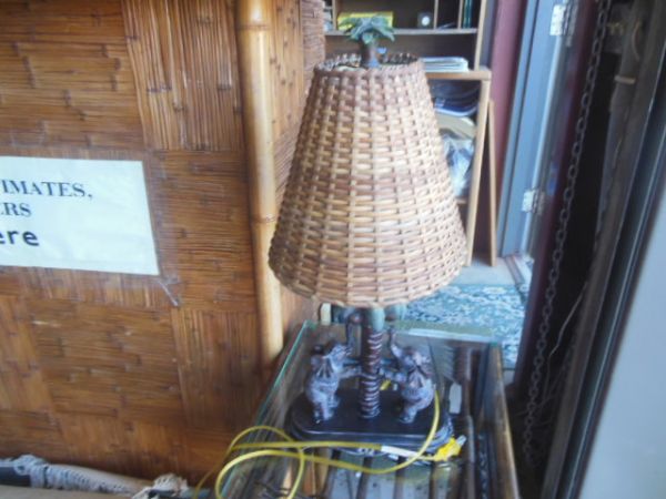 24''H Double Elephant Base Lamp w/Woven Shade & Palm Finial.