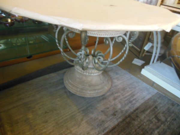 48''dia x 30''H Glass Topped, Concrete and Metal Base Entry/Dining Table.
