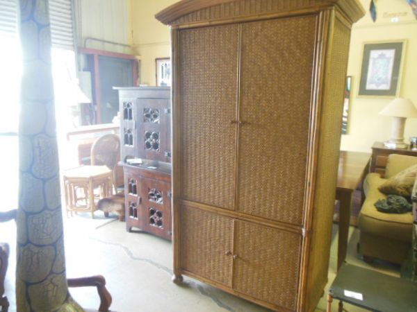 42'' x 21'' x 82''H Woven Wicker and Bamboo Armoire w/Shelves and Drawer.