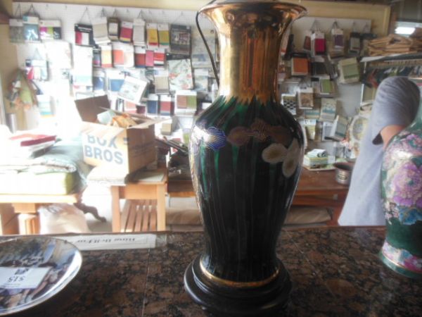 24''H Lamp Base - Exquisite Floral Design, Black Asian Style Wooden Base.