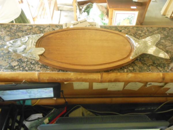 Olive Wood Fish Serving Platter from Germany - Pristine! - 24''L.