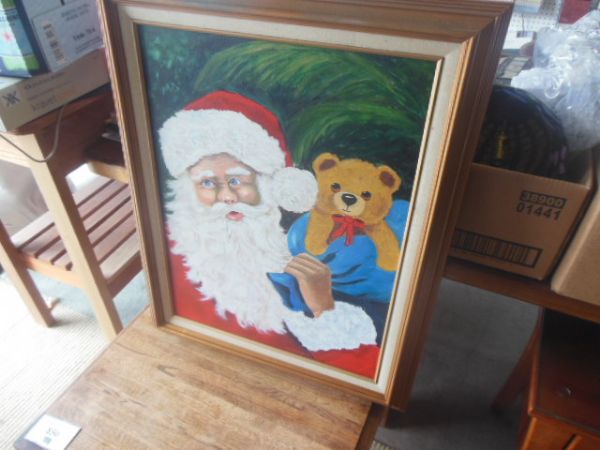 23'' x 29''H Santa w/Teddy Bear Painting.