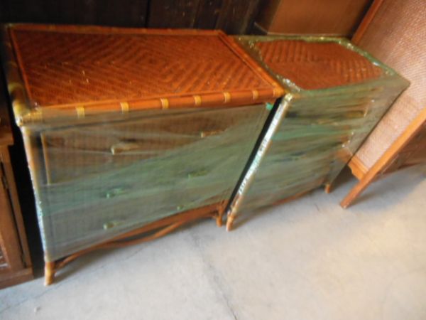34'' x 19''x 34''H Wicker and Rattan Dresser w/Rawhide Wrapped Corners.
