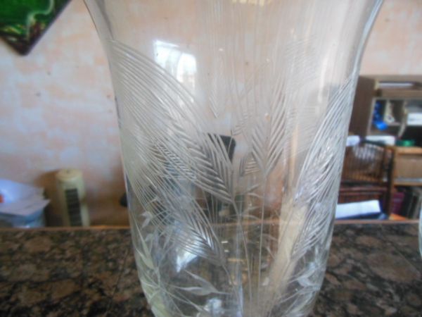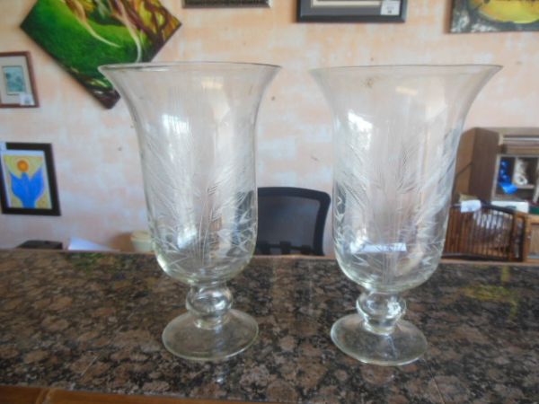 10''H Crystal Hurricane/Vases w/Hand Cut Wheat.