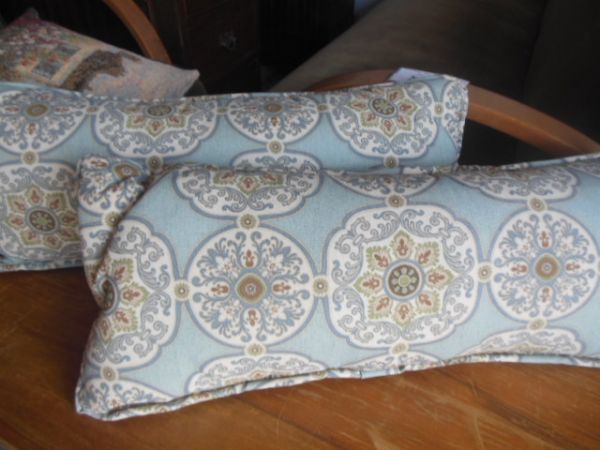 SET OF TWO - Lumbar Pillows - Light Blue w/Medallions - 22'' x 8.5''.