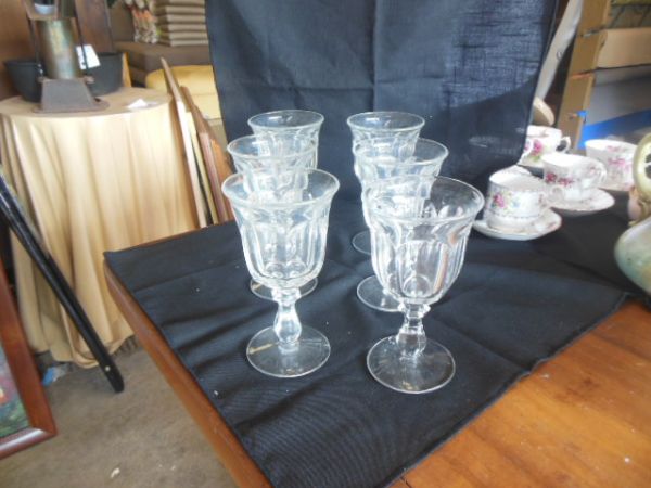 SET OF FIVE - Anchor Hocking Stemmed Glasses (Includes Extra with Chipped Base to make 6).