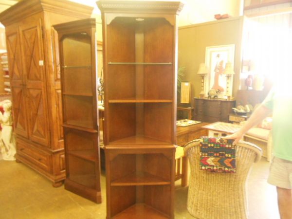 Wood Corner Shelves w/Glass Shelf and Lighting.