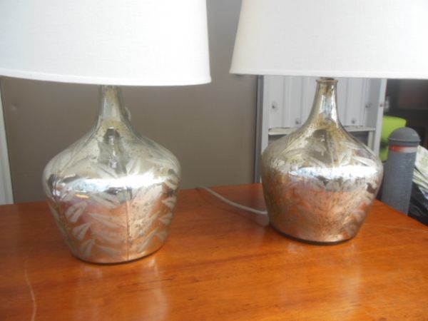 SET OF TWO - Mercury Glass Lamps w/Leaf Design - 22.5''H.