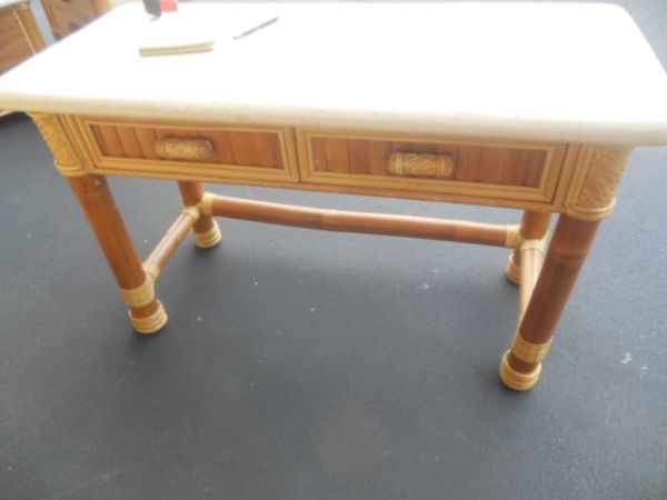 47'' x 22'' x 30.5''H Stone Top Desk w/Split Bamboo, Elephant Bamboo and Rattan Accents.
