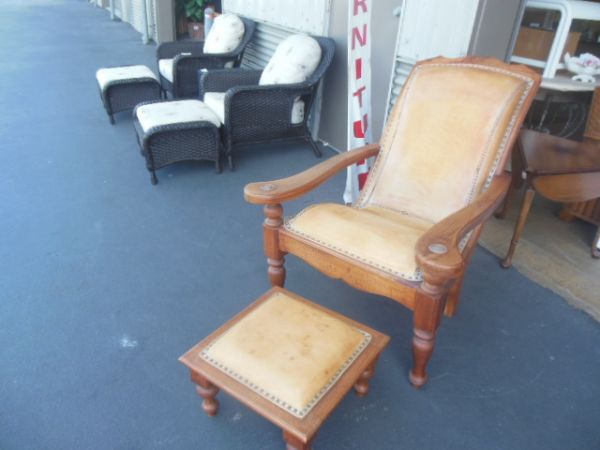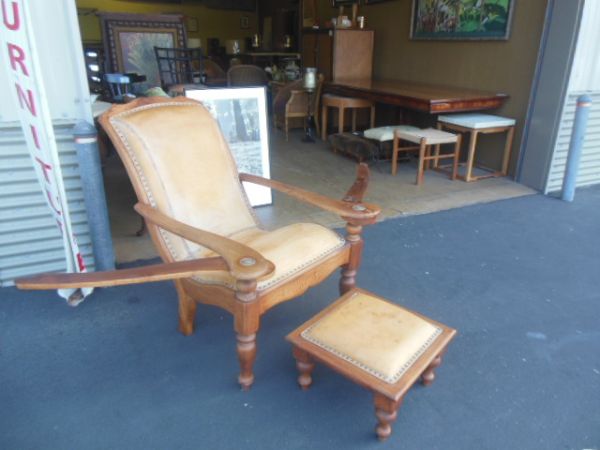 Antique Plantation Chair w/Extendable Arms and Footstool - Water Buffalo!.