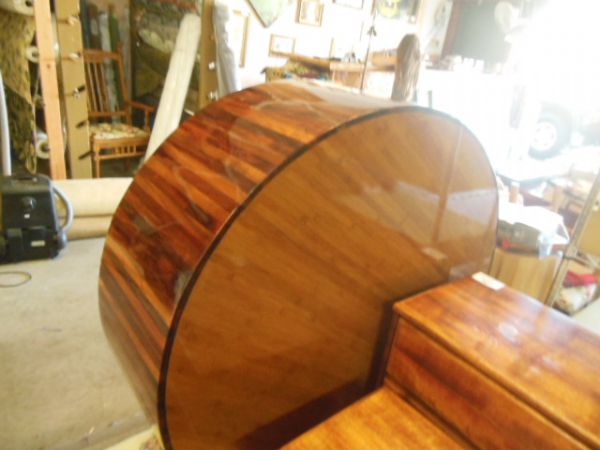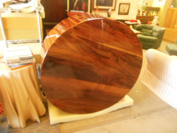 42.5''dia x 17.5''H Reversible Koa/Bamboo Tops w/Koa Strip Plank Sides.