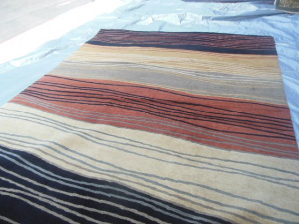 100% Wool Indich Rich Striped Rug - 8' x 10'.