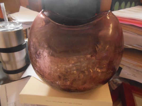 Amethyst Crackle Spherical Vase - Blenko? - 8''dia.