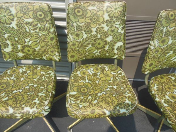 SET OF FIVE - Green Floral Swivel Kitchen Chairs.