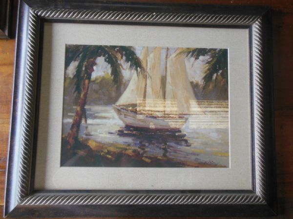 24.5 x 20''H Sailboat w/Palm Shore Picture.