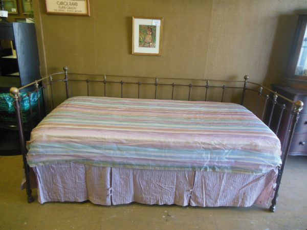 Daybed w/Trundle - Delicate Floral Design Wrought Iron and Brass - 40'' x 85'' x 38''H`.