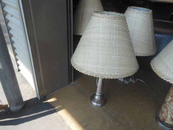 SET OF TWO - Nickel Plated Base w/Lauhala Shades.