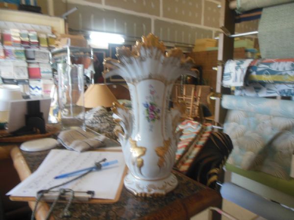 12.5''H Porcelain Vase w/Roses and Gold Trim.