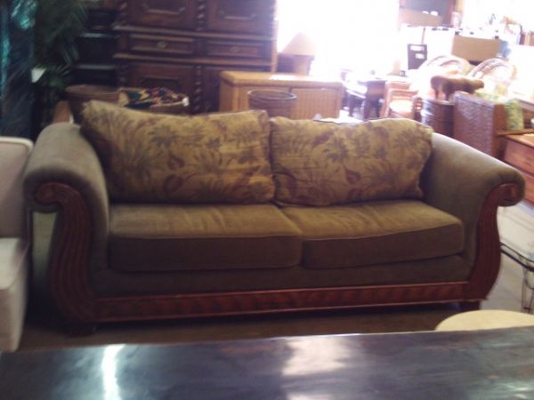 8' Long Overstuffed Sofa w/Wood Trim - COMFORTABLE!.