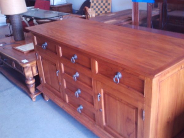 66'' x 25'' x 35.5''H Teak 6 Drawer/2 Cabinet Buffet/Dresser.
