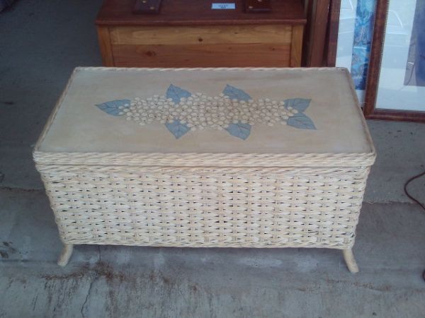 30.5'' x 15.5'' x 16''H Wicker Chest w/Painting on Lid.